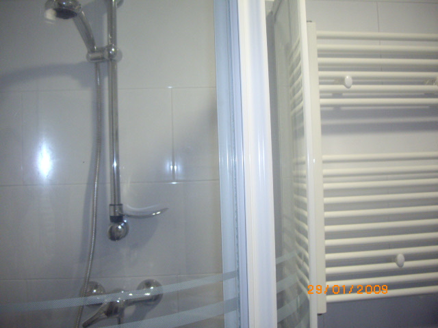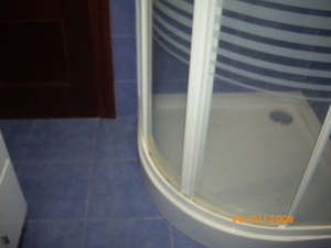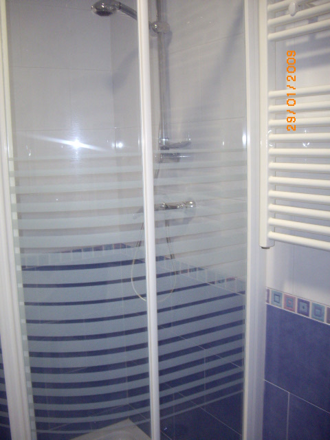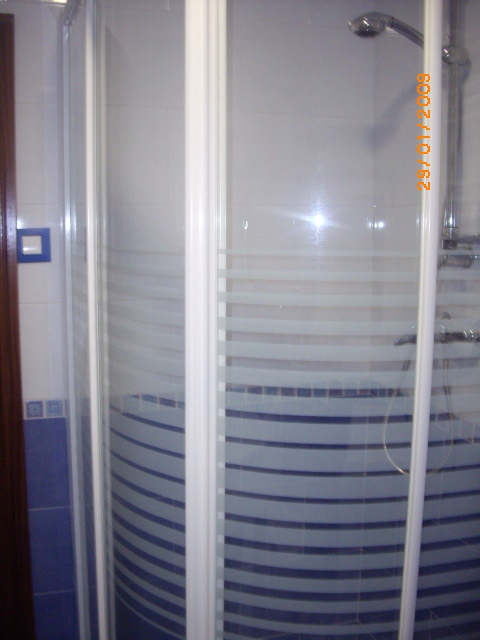 • Mampara de plato de ducha en angulo de 90 cm con cristal de seguridad